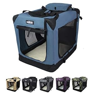 EliteField 3-Door Folding Soft Dog Crate with Carrying Bag and Fleece Bed (2 Year Warranty), Indoor & Outdoor Pet Home (24″ L x 18″ W x 21″ H, Blue Gray) Buy Now