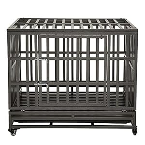 SMONTER 42″ Heavy Duty Dog Crates Indoor & Outdoor Dog Cage Strong Metal Pet Kennel Playpen with Two Prevent Escape Lock and Locking Wheels Buy Now