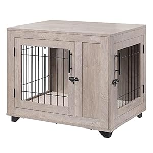 beeNbkks Furniture Style Dog Crate, Double Doors Wooden Wire Dog Kennel End Table, Pet Crate with Soft Bed, Decorative Dog House Pet Furniture Indoor Use Buy Now