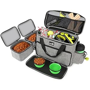 Sale! pecute Dog Travel Bag Large, Portable for Travel, Pet with Multi-Function Pockets, Tote Organizer Outdoor use Set 2 Food Bags + Collapsible Bowls, Grey £32.99 Original price was: £32.99.£28.49Current price is: £28.49. Buy Now