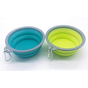 FONYA dog bowl and pet bowl collapsible travel silicone camping/hiking/walking crates with fixing clips [2 cup sets] portable collapsible dog portable (lake blue, yellow-green) Buy Now