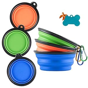 MXZONE 3 Collapsible Dog Bowl, Portable Travel Water Silicone Bowl for Small Pet Dog Cat Food Water Feeding, Free Pet ID-Tag Buy Now
