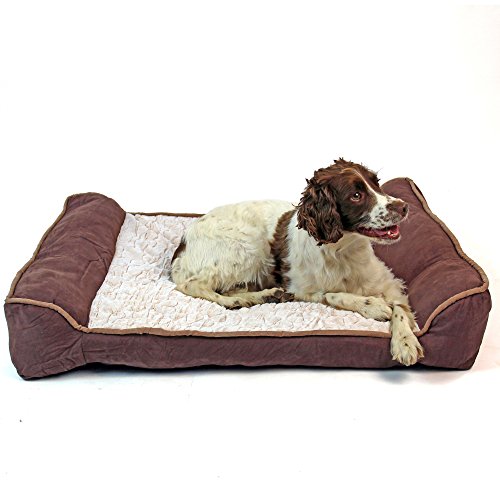 Large soft pet pillow sofa bed with brown faux suede outer