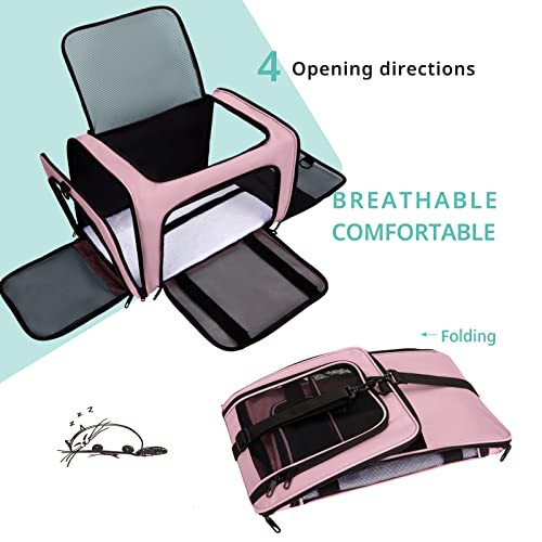 【Portable and Foldable】Tsa approved cat carrier with multiple ways to carry, hand, or shoulder, the shoulder strap is detachable and can be adjusted at any time as needed. There is a storage function on the side, you can store the items you need when you go trip, which is convenient to carry and save space. Having four tiny feet under the bottom of the kitten carrier, which can reduce the contact between the bottom and the ground, make the bottom neat and durable.