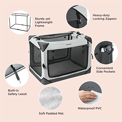 Foldable and Space-Saving Design: This soft dog crates for medium dogs provides a safe, comfortable dwelling for your pet and can be folded down in seconds to save space when traveling or when not in use. This soft-sided dog crate is quick and easy to set up with no tools required.