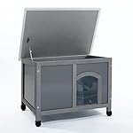 FUNCTIONAL DESIGN: Lift up roof with locking hinge to keep the lid raised whilst cleaning. Removable wooden slatted floor with plastic covering which can be removed for further deep cleaning. Adjustable feet enable our kennels to be used on uneven ground but also protect the wooden legs from damaging over time.