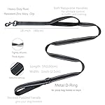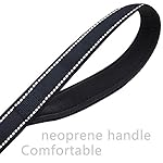 DESIGN FEATURES: Two padded soft neoprene handles. One located 18 inches from the clasp. Great for when you need to keep your dog closer to you in traffic, obedience class, or around others. The second padded handle at the end for comfort against the wrist.