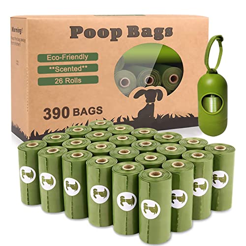 Yingdelai Dog Waste Bags – Extra Thick Biodegradable, 390 Bags (26 Rolls of 15), Scented, Lead Proof, with 1 Dispenser and Leash Clip