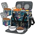 UNIQUE DESIGN:The size of this pet travel bag is 13.5×6.5×13 inches, which meets the daily needs of most pets; and two 6x6x6 inches special food containers to effectively prevent food from being contaminated; the front zipper pocket is fully opened and can be placed in any A feeding table was created for two 5×3 inch safety silicone bowls.