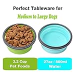 SIZE These large collapsible dog bowls dimensions are is 6.29″ diameter and 2.76″ height when fully expanded. Each bowl holds 3.2 Cup food or 27oz water when fully expanded. Perfect Collapsible dog bowls for medium large dogs.